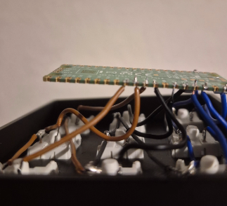 Soldering completed with each switch having a connection between ground pins. The pico 2 board is 21mm x 55mm or 0.83in x 2.01in.
